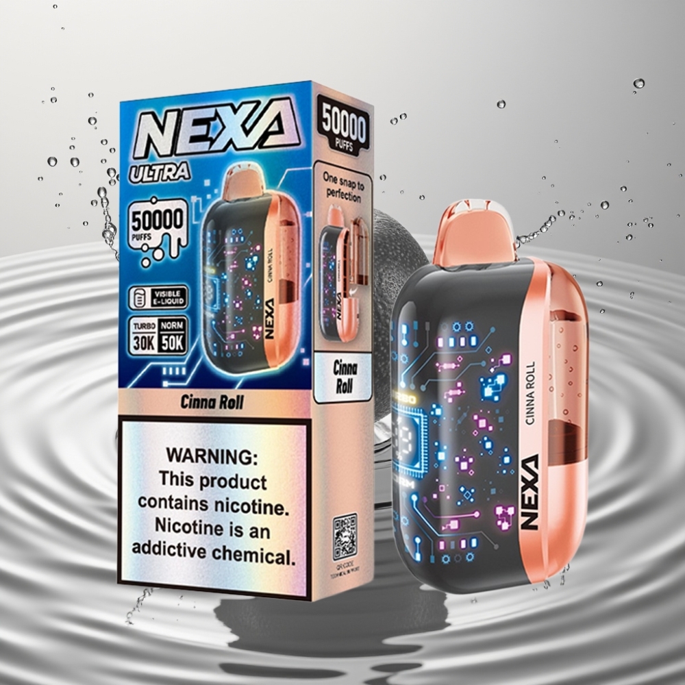 نيكسا أولترا NEXA Ultra 50000 فايب قابل للتصريف – سعة 20 مل، 50000 نفخة، نيكوتين 5%، شاشة منحنية – نكهة سينا رول