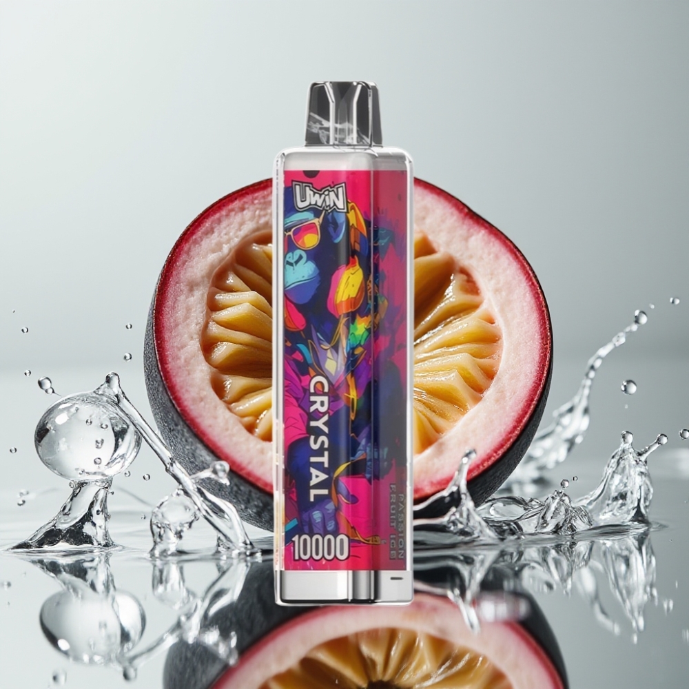 يوين كريستال UWIN Crystal 10000 نفخة بنكهة الباشن فروت آيس – 18 مل، شحن نوع سي، أضواء آر جي بي